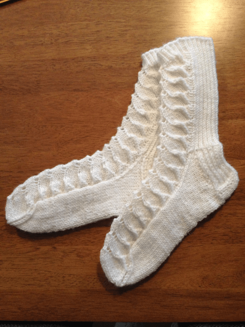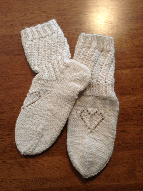 Nämä vaatimattoman näköiset tavissukat kaipaavat vähän pitemmän selityksen. Sukissa on käytetty minulle kahta ihan uutta tekniikkaa, joista varskinkin toinen on hyvin mullistava. Ensi se vähemmän mullistava tekniikka: tiimalasikantapää. Olen tehnyt iän kaiken sukkani perinteisellä vahvistetulla kantapäällä, mutta halusin oppia toisenkin yleisen tavan. Tiimalasikantapää on minusta helpompi ja nopeampi neuloa, mutta en ainakaan näitä ensimmäisiä kantapäitä saanut tehtyä ilman reikiä, vaikka ohje olikin hyvä ja ymmärsin hyvin idean. Ehkäpä toisella kertaa jo tulee ilman reikiä.