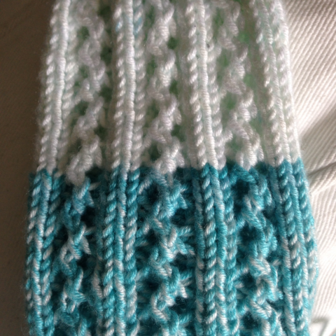 Sininen ei kuulu lempiväreihini, vaikka pidänkin siitä enemmän kuin vaikkapa vihreästä. Joku tässä Puro Batikin sinisessä sävyssä kuitenkin kolahti ja kerä päätyi puikoille. Pintakuvion löysin venäläiseltä sivustolta, joka on kyllä uskomaton inspiraation lähde kaikkine pitsi- ja palmikkomalleineen. Päädyin tuohon malliin osaksi sen vuoksi, että silmukkamäärä mätsäsi just eikä melkein eikä minun tarvinnut sitä puolta muokata. Tein myös toisenlaisella kuviolla lapsen sukat kerän jämistä. Neuloin nämä vähän isommilla puikoilla kuin edelliset Puro Batikini ja 3.5 mm olikin täydellinen puikkokoko käsialalleni.