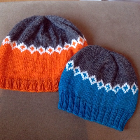 Pipoille on nyt selkeästi tarvetta, kun niitä tulee neulottua näin paljon. Ja mukavahan niitä on neuloa. Harmaan pipon kirjoneulekuvio löytyi Pinterestistä. Ruskean pipon ohje löytyi Punaisen Sydämen Torppa -blogista.