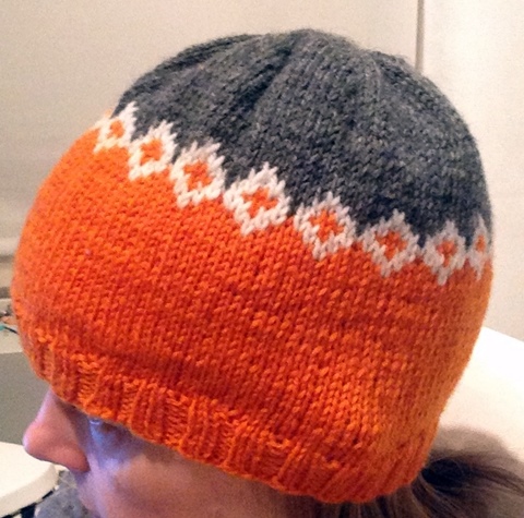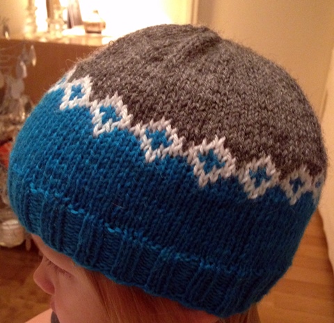 Omaan päähäni piposta tuli hieman suuri. Joustinta olisi voinut neuloa hieman korkeammin ja pienemmillä puikoilla.