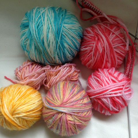 Joka tapauksessa päätin nyt myydä itsevärjäämiäni lankoja pois kuleksimasta. Langathan eivät pilaannu, mutta mieluummin soisin niiden saavan uuden muodon jonkun toisen neulomana, kuin itselläni kaapin täytteenä.