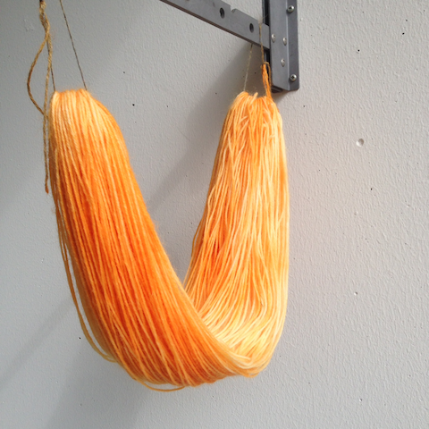 Tein tänään muutakin, jota en ole tehnyt pitkään aikaan. Värjäsin nimittäin lankaa! Hetken mielijohteesta kaivoin kaapin kätköistä lankaa ja värejä ja pistin pari vyyhtiä kattilaan. Ihan kivannäköistä tuli, vaikka ei tietenkään yhtään sellaista kuin kuvittelin. Niinhän siinä värjäämisessä tahtoo käydä, se ei ole miksikään muuttunut 🙂